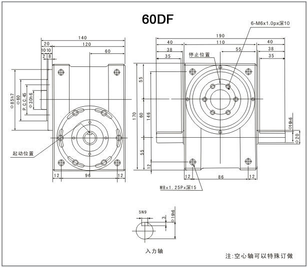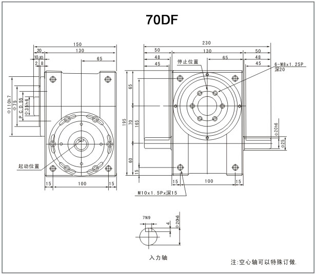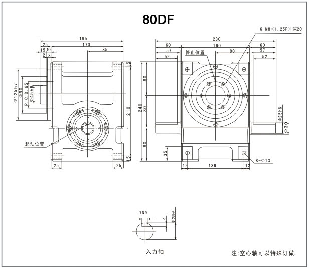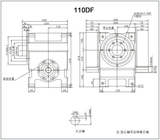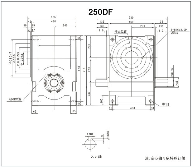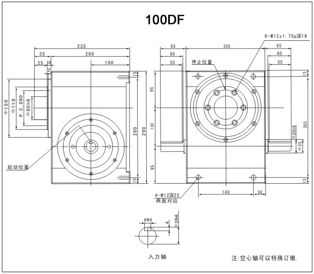 DF法兰型凸轮分割器此机种具有重负荷特性、可承受较大的垂直径向或轴向压力,其输出轴为法兰盘式设计,有凸缘中心、盘面螺孔、定位、销孔、固定面宽大、可使链接件更具有坚实平稳。最能适用于较大负荷的回转式圆盘驱动场合,别广泛使用在各类盘式加工机械及类似机构的产业机械,自动化间歇驱动部,驱动圆盘。DF法兰型凸轮分割器此款分割器的应用比较广范,既有圆盘式的使用,也有流水线式的应用,这种类型由于占用的空间较小、精度效率高,输出轴端可以直接安装圆盘,安装和整体的设计比较紧凑,在实际运行过程中,对于重复定位精度的影响较小,对于驱动角度选择较大的情况下,更可以增加它的稳定性,利安印科技为您的自动化控制提供合理的解决方案,包括驱动方案的设置,普通电机、步进、伺服的选择,如果不能满足您的要求,我们将会设计和构建符合您的规格和要求.
